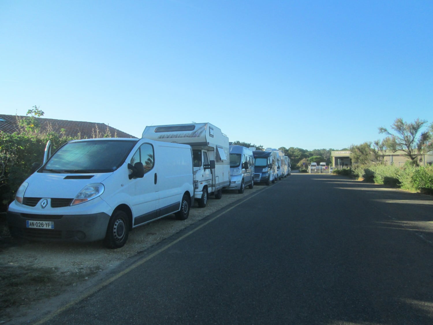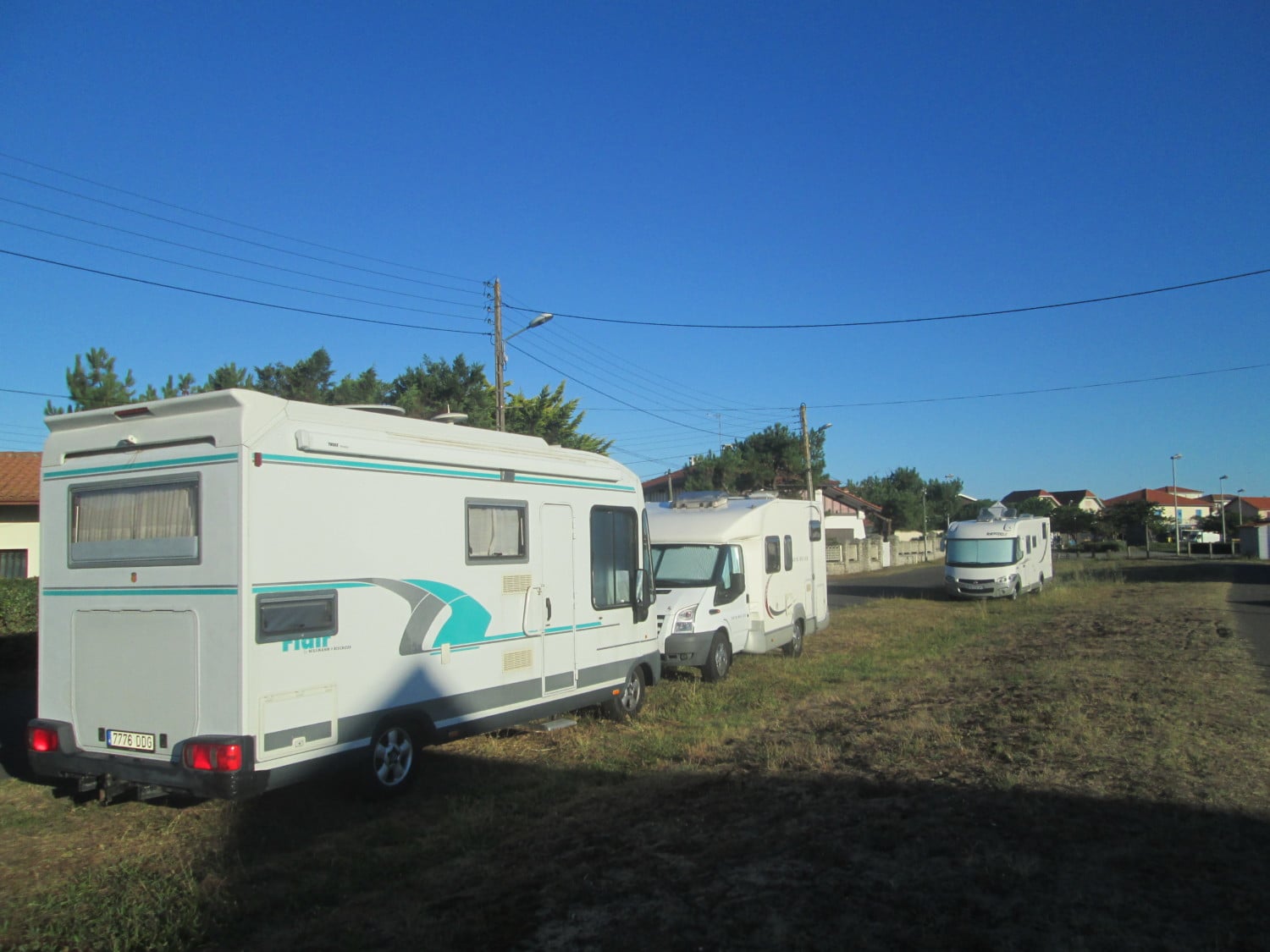 Ainsi présente la voix de la M, l’aire de camping-cars, sise près du skate-park. Pour m’être baladée dans Mimizan, cet été « à l’heure où blanchit la campagne » et comme en témoignent les photographies volées au déjeuner (parking derrière l’Office intercommunal du tourisme, terre plein entre les rues des Bergeronnettes et des Pinsons, hélistation), il semblerait que de nombreux campeurs sur roulettes aient choisi d’autres lieux pour délicieusement se poser, se reposer, être au plus près de l’Océan et des commerces…